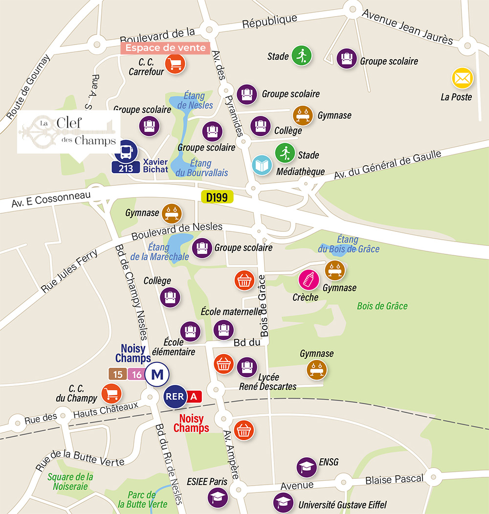 Champs-sur-Marne propose un ensemble de structures scolaires sportives et culturelles : espaces verts, parcs et jardins, espaces boisés, établissements scolaires réputés ainsi qu’une large palette d’équipements de loisirs : médiathèque, salle de spectacles, cours de tennis, Gymnases, aires de jeux…